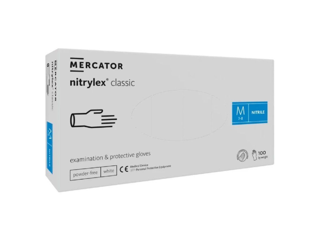 Nitrilové rukavice jednorázové MERCATOR nitrylex classic biele M 100ks